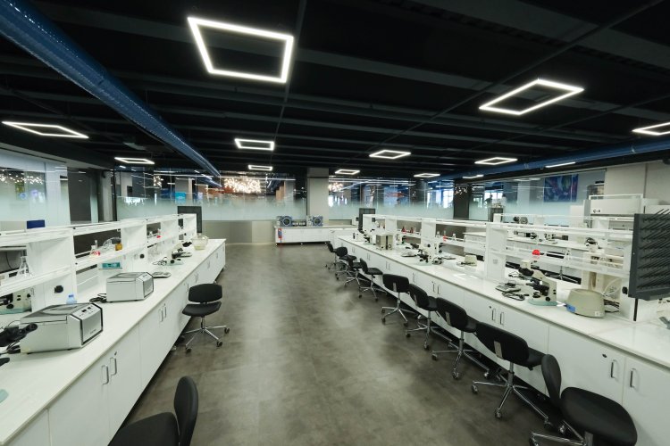 8 katlı yapısı ve peyzaj alanı dahil yaklaşık 40 bin metrekarelik inşa alanı bulunan ana kampüs binasında rektörlük katında başlayarak her çizgide çağdaş bir sadelik, her yüzeyde zamansız bir estetik hâkim kılındı. Kampüsün kalbinde yer alan tıp ve eczacılık fakülteleri; derslikler, amfiler, laboratuvarlar ve sosyal alanlarla çevrelendi. Elektronikten moleküler biyolojiye, anatomi ve biyokimyadan mikrobiyolojiye uzanan farklı laboratuvarlarda teknoloji ile mekânsal konforun dengesi titizlikle sunuldu.